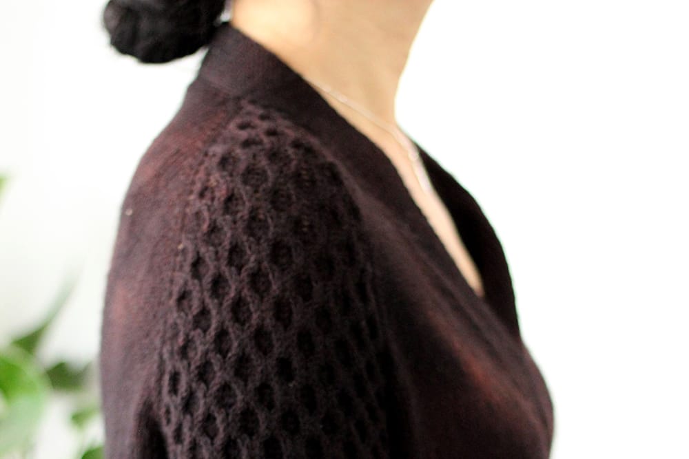 Hi les tricopines, je vous annonce la sortie de Jianyue, un pull loose, très confortable. Il est tricoté du haut en bas sans couture avec des manches longues ouvertes.