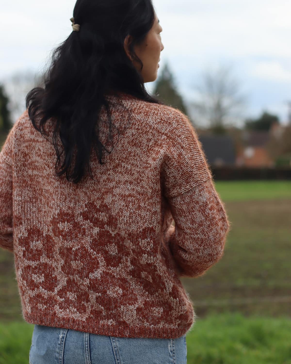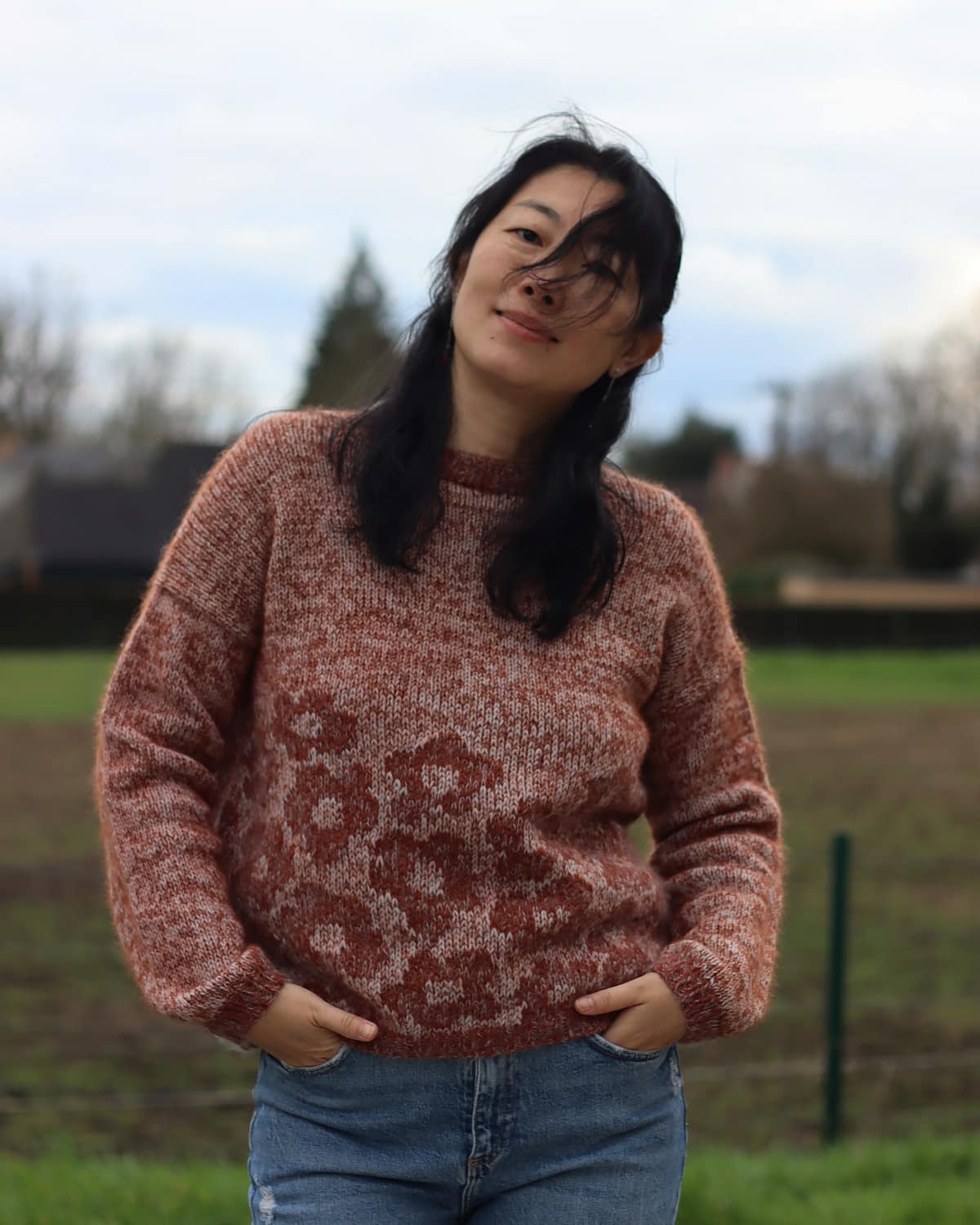 Tricoté du haut vers le bas et sans couture, Moshan se distingue par un motif floral discret qui se dessine au bas du corps. Idéal pour les journées plus fraîches, il allie douceur, chic et chaleur dans un pull féminin et polyvalent.
