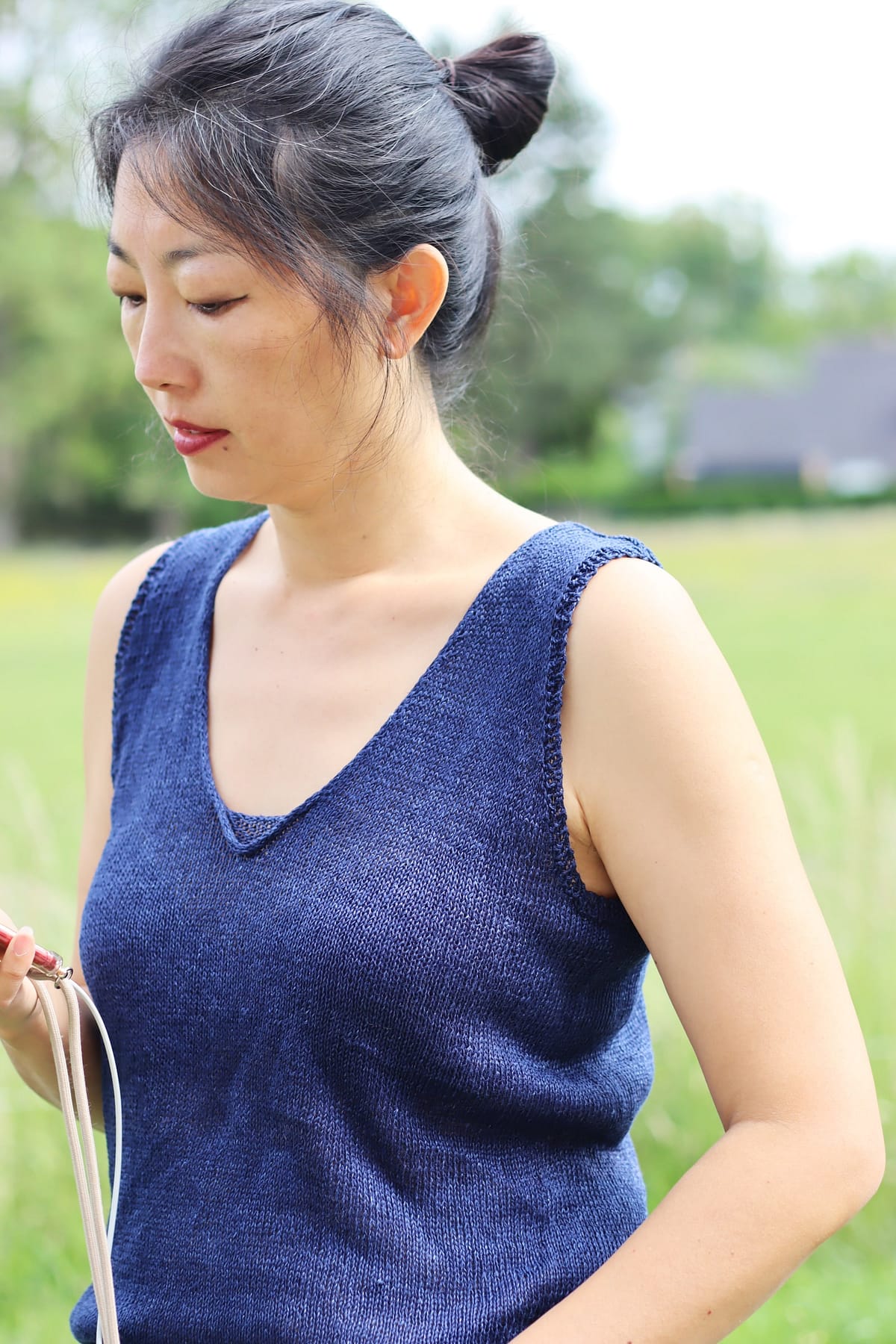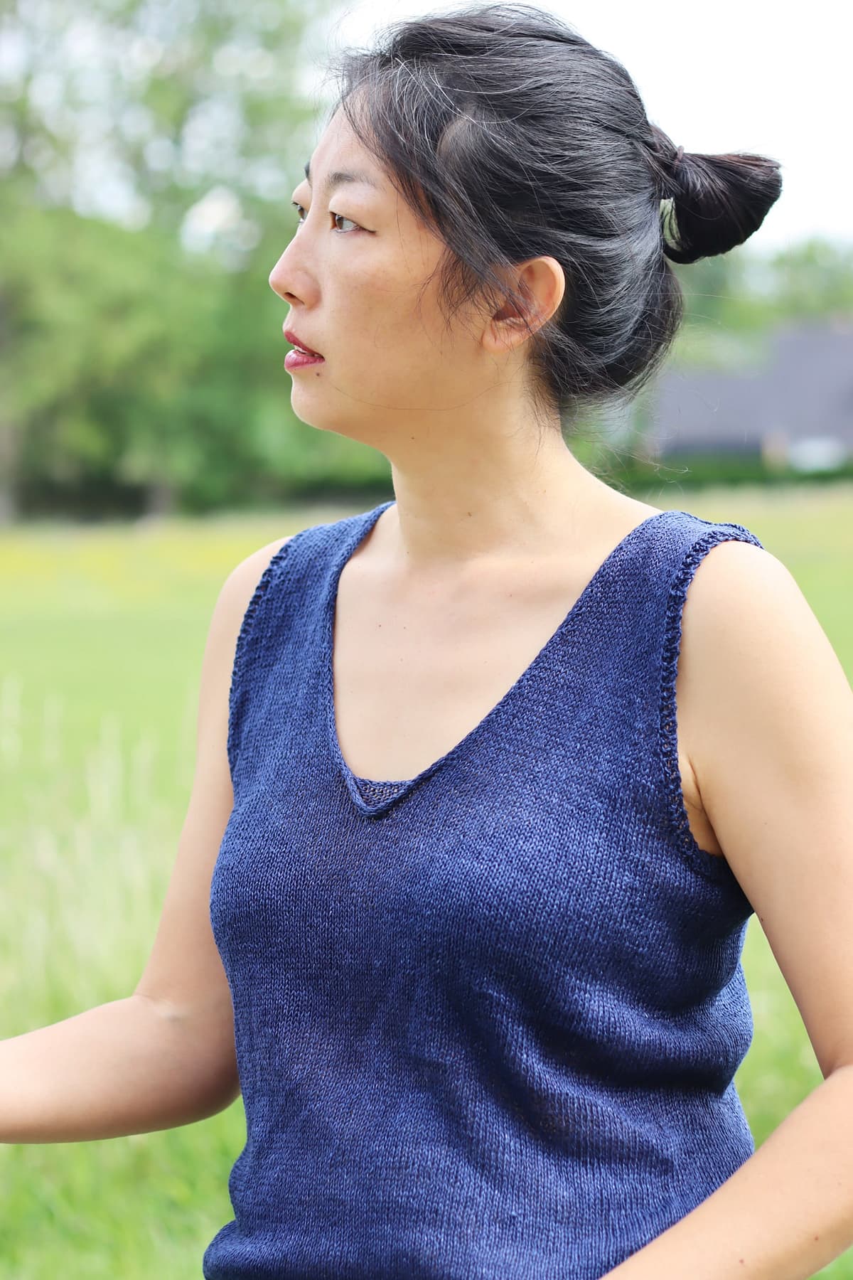 Tricoté du haut vers le bas et sans couture, Xiari est un top estival simple et léger, parfait pour accompagner la saison chaude avec douceur.