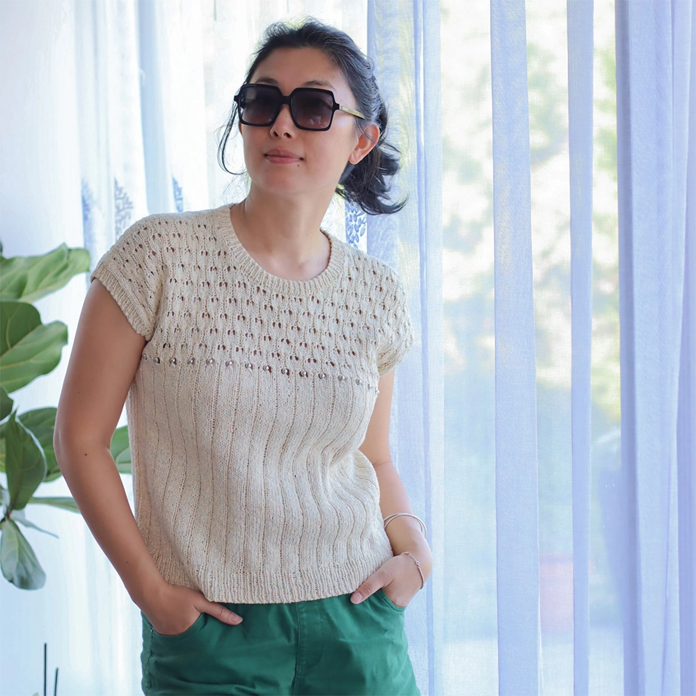 Perlito est un patron de tricot pour un pull d’été femme, pensé comme une pièce légère et élégante pour les jours ensoleillés. Sa texture délicate, sa coupe moderne et son confort au quotidien en font un modèle qui trouve facilement sa place dans une garde-robe faite main.