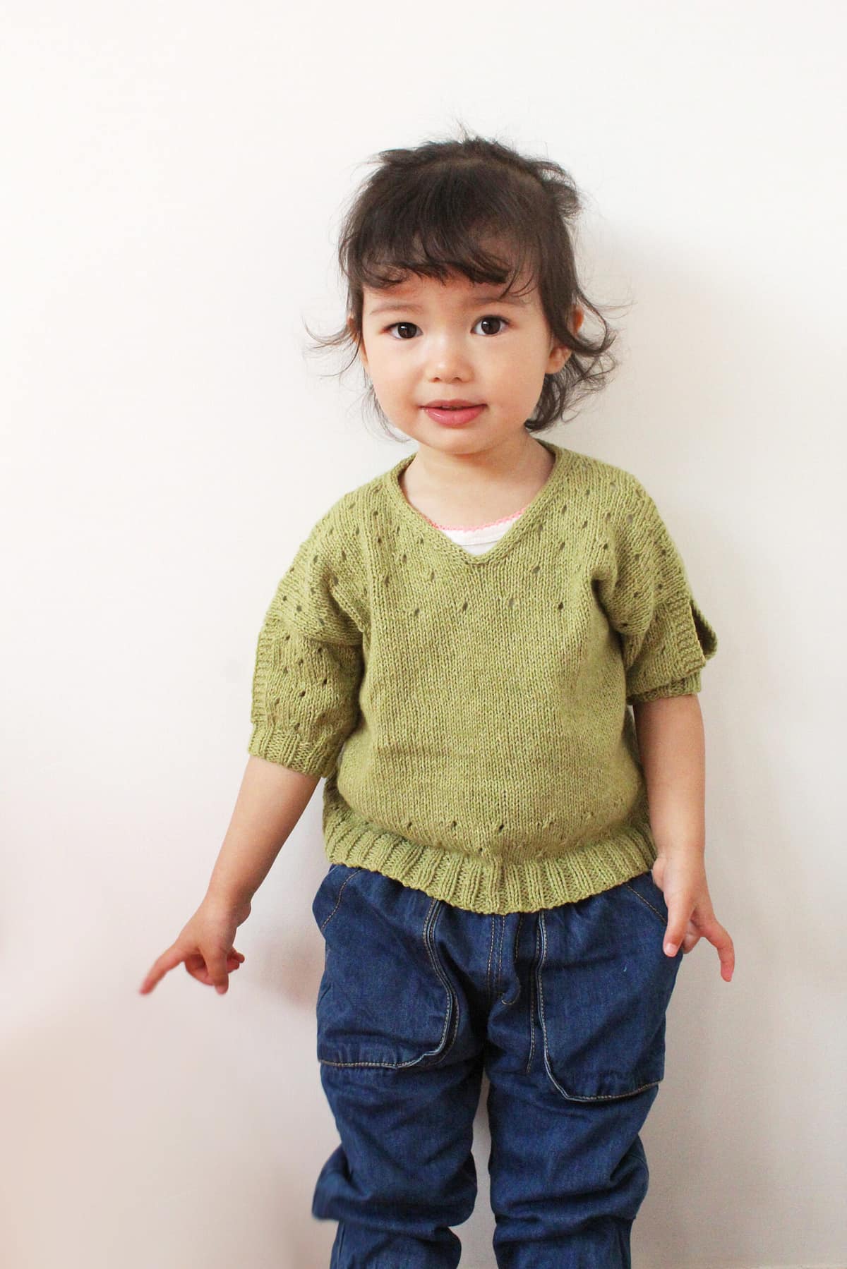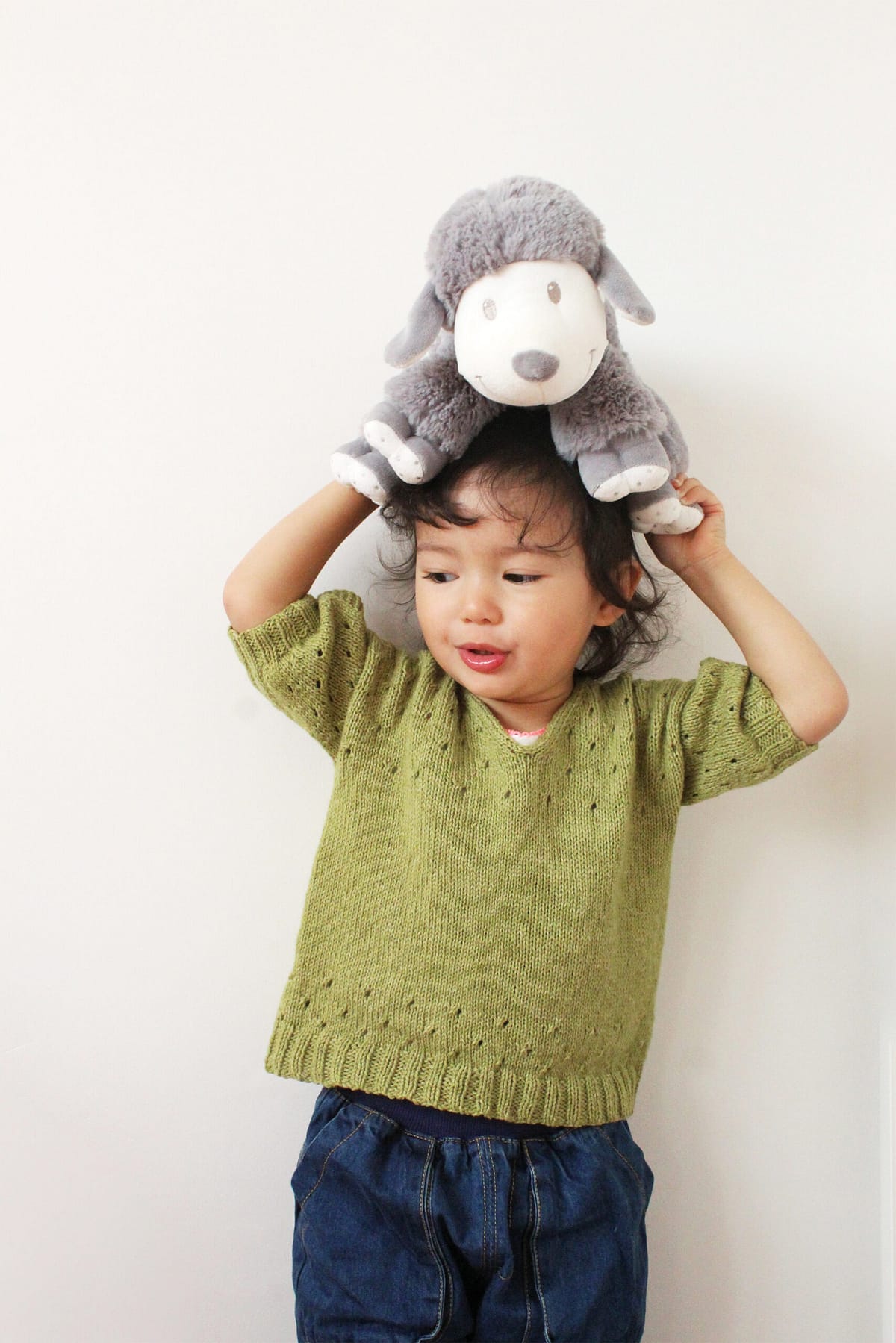 Little Dianer est un pull à manches courtes, tricoté du haut en bas et sans couture, avec une petite ouverture pratique. Il s’agit de la version enfant du modèle Dianer.