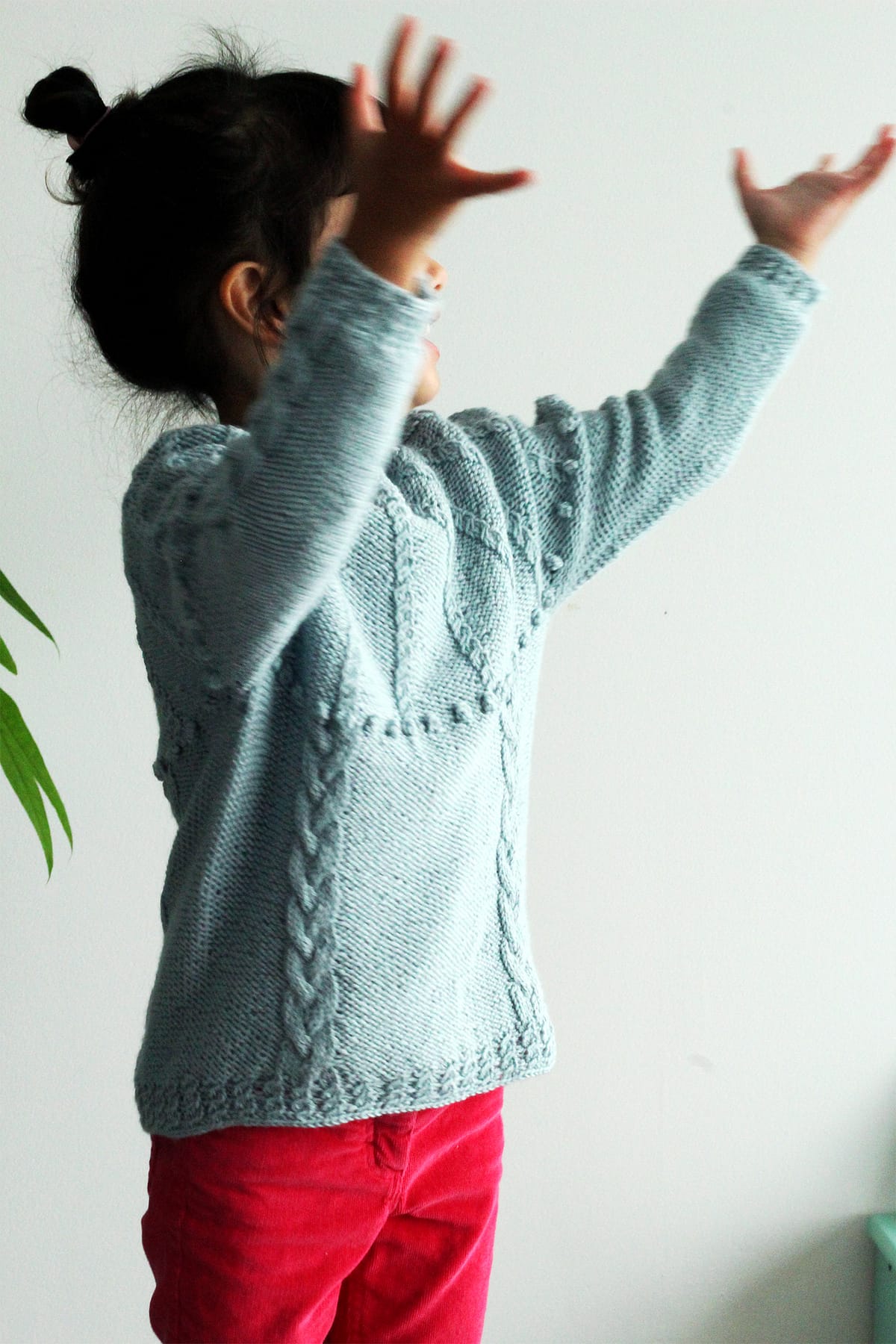 Tricoté du haut vers le bas et sans couture, Little Mofou présente un empiècement circulaire. Il s’agit de la version enfant du modèle Mofou.