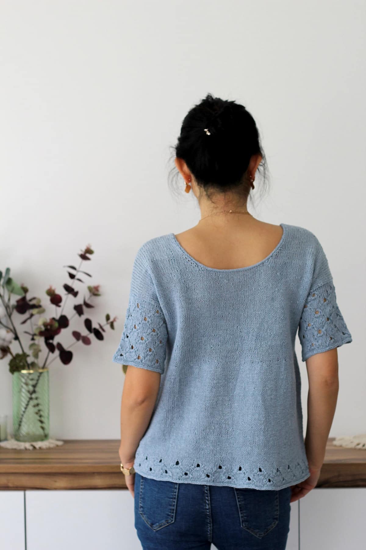 Pindo est un patron de tricot pour un pull d’été femme, pensé pour créer une pièce légère, respirante et confortable à porter lorsque les journées deviennent chaudes. Sa coupe élégante et sa texture délicate en font un modèle idéal pour compléter une garde-robe faite main estivale.
