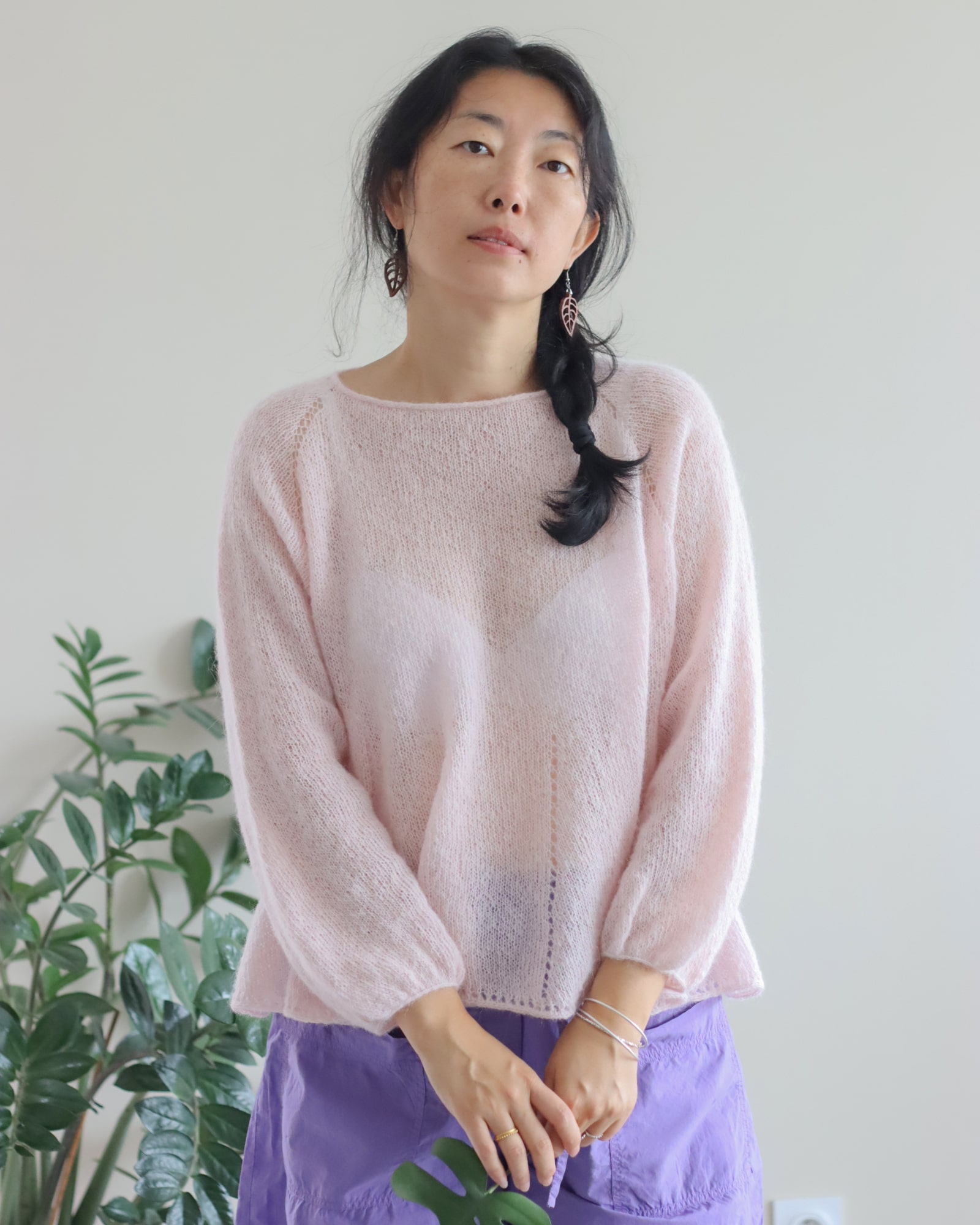 Ce pull est tricoté du haut vers le bas sans couture, moelleux et vaporeux. Il se distingue par sa légèreté, sa coupe ample et ses jolis détails ajourés. Il est parfait pour la mi-saison ou les fraîches soirées d’été.