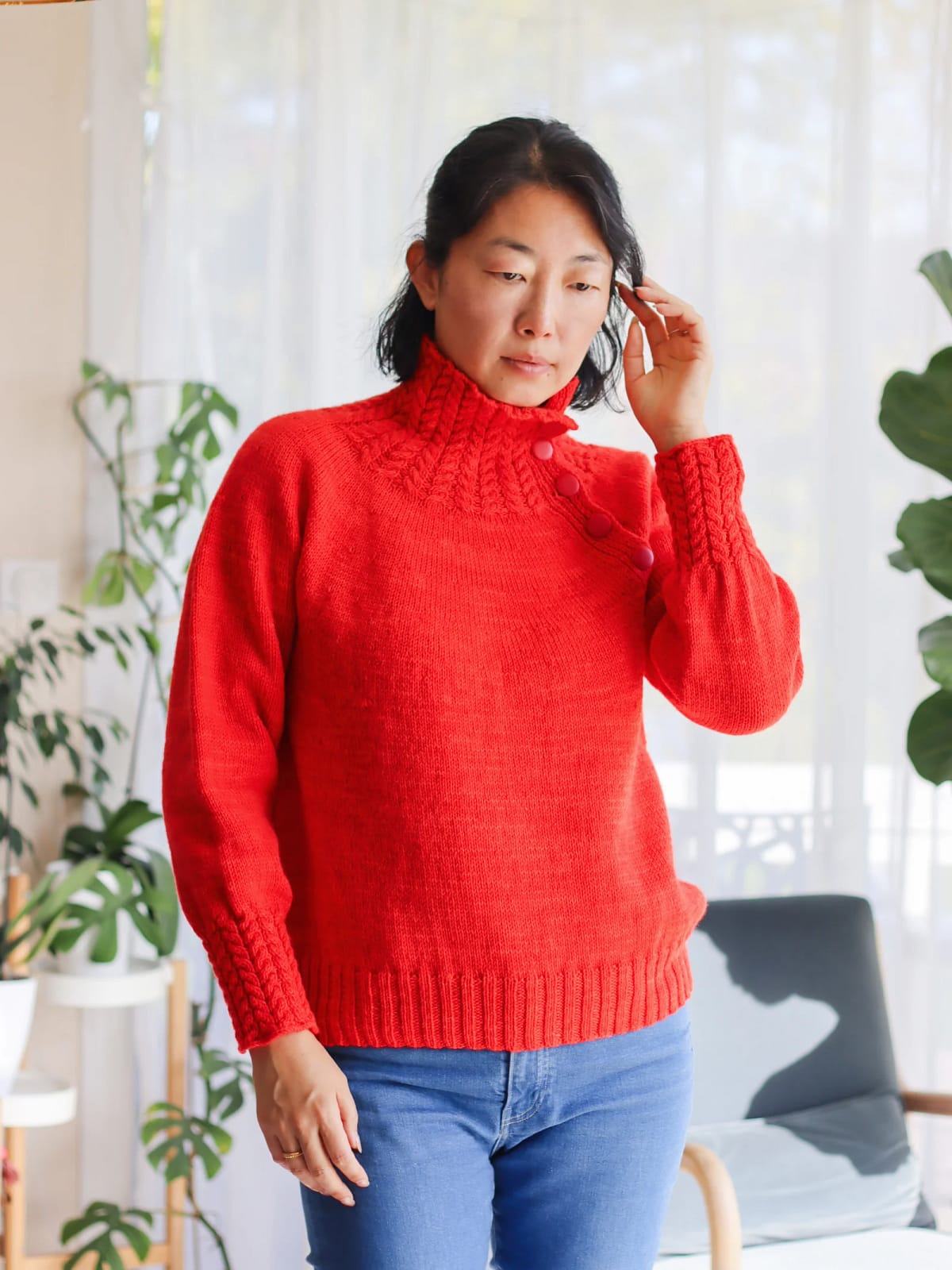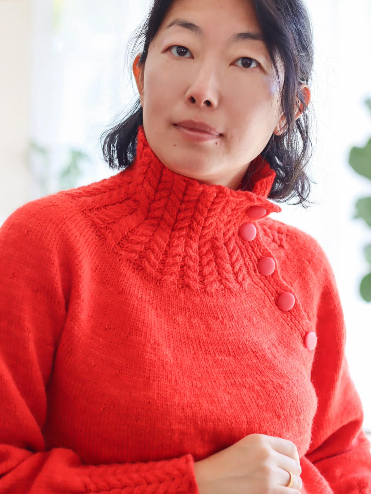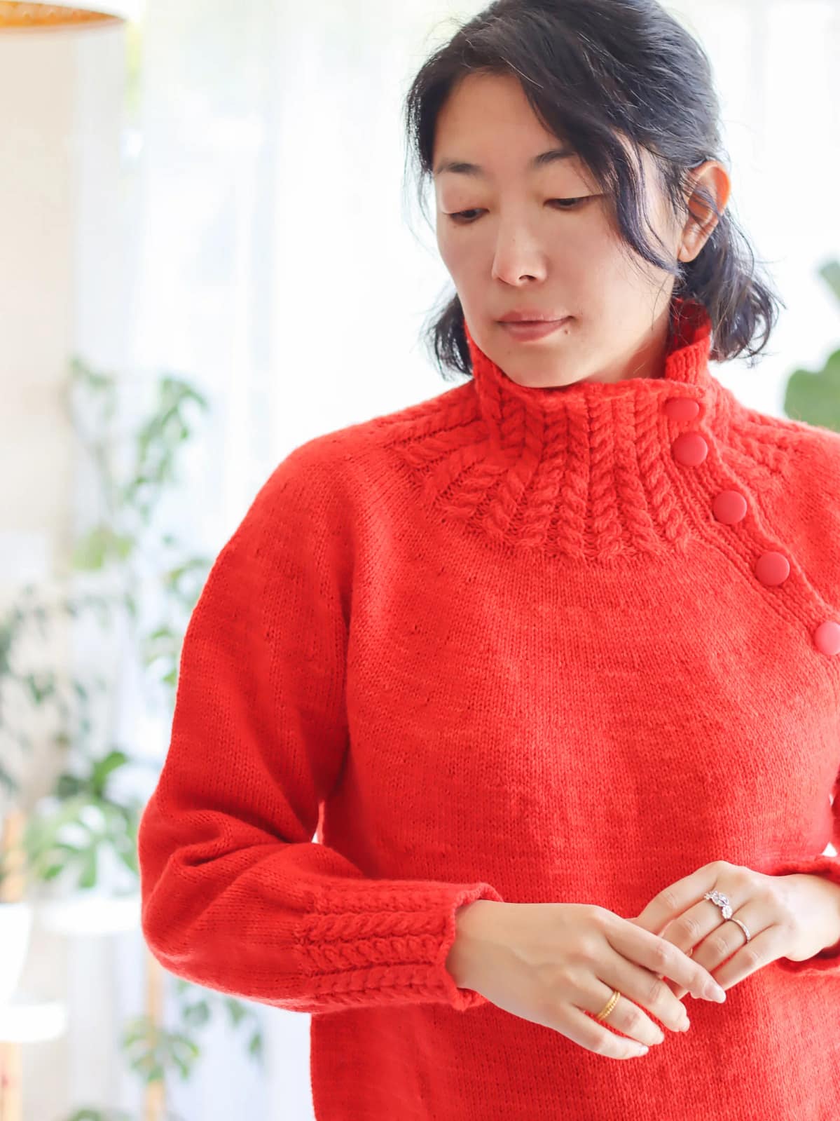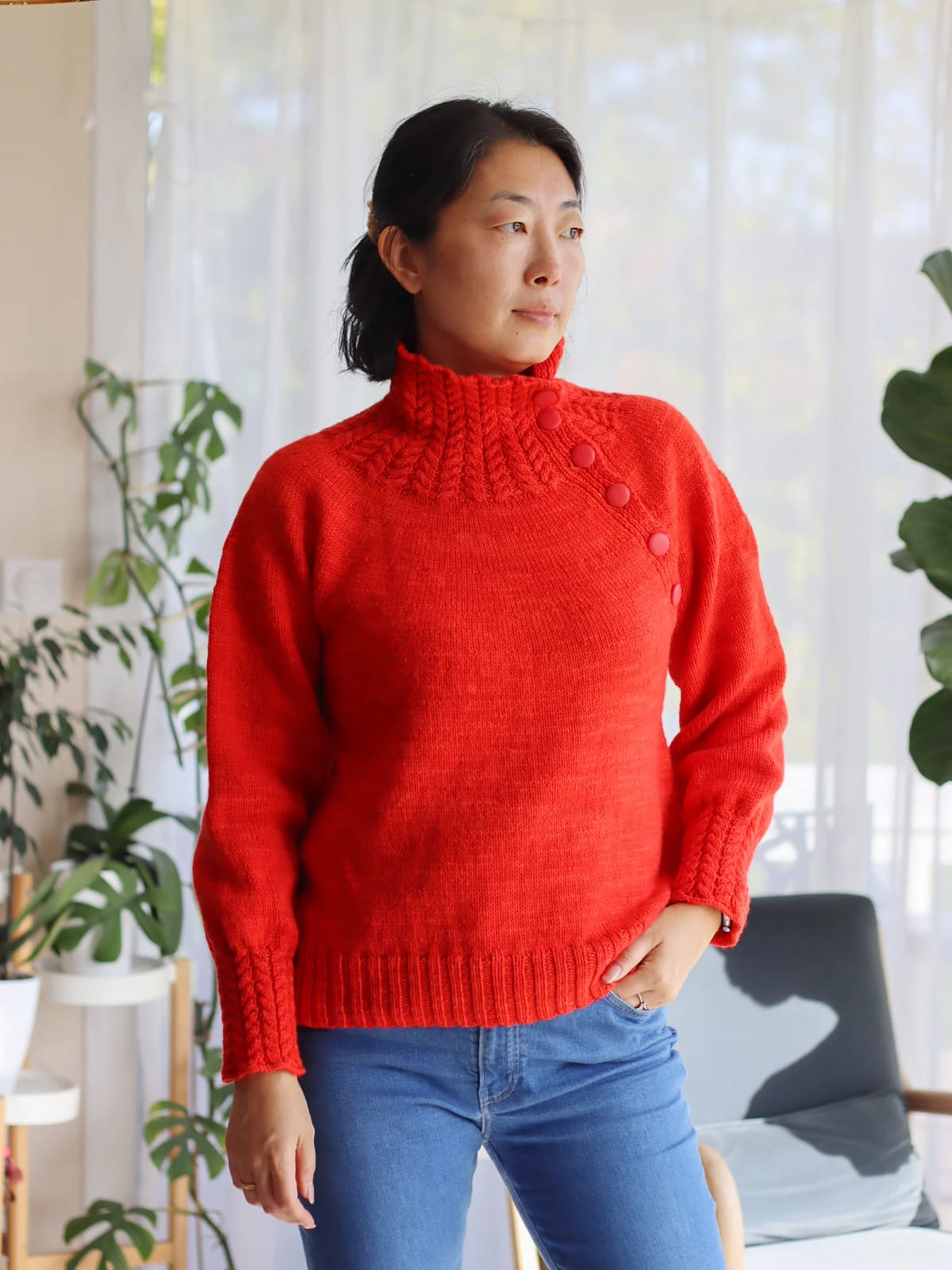 Siyong est un patron de tricot de pull femme, tricoté du haut vers le bas (top-down) et sans couture, idéal pour celles qui aiment les constructions modernes et confortables.