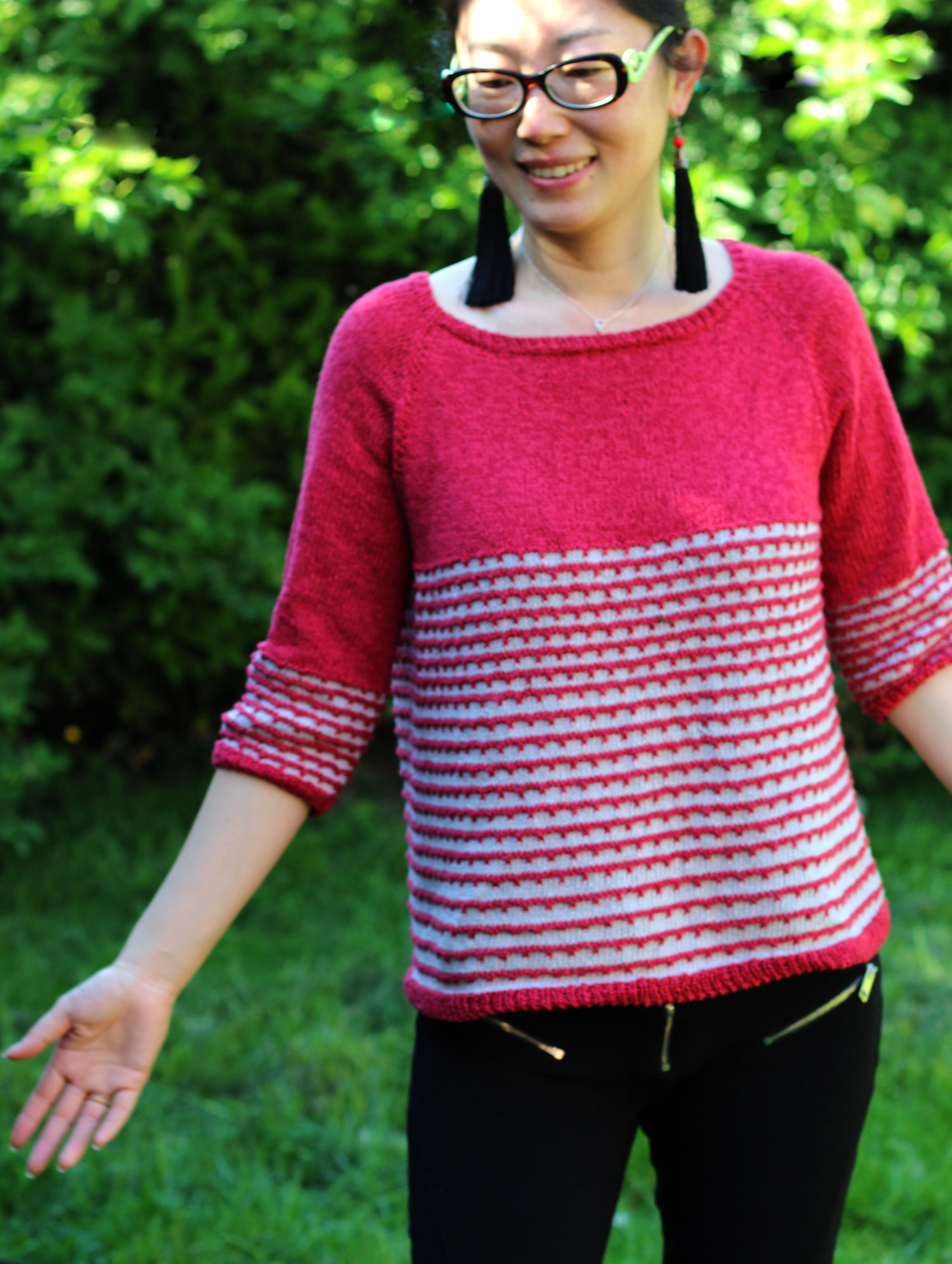 Little Angela fait partie d’un pull en duo mère fille, confortable avec une ouverture arrière, un motif mosaïque sur le corps et les manches. C’est un pull top down sans couture. Vous trouvez aussi la version adulte Angela pour faire un joli duo.