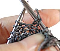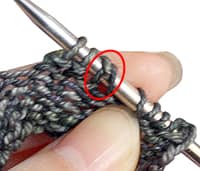 5. Purl the next stitch and tighten the yarn, then continue to work normally.